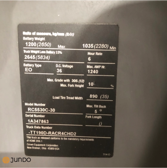 El montacargas eléctrico Crown RC5530-30 es una solución confiable y eficiente para operaciones interiores, ya que, destaca por su diseño compacto y facilidad de maniobra. Perfecto para empresas que buscan equipo eficiente en espacios reducidos sin comprometer su presupuesto. No incluye centro de carga. Bateria presenta una duración actual de 2 horas (detalle a revisar) Precio publicado no incluye IVA ni Traslado.