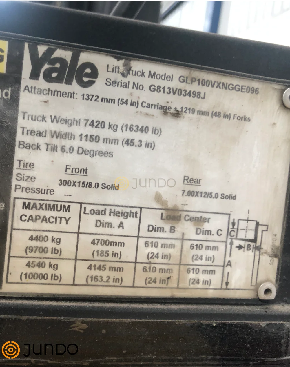 Montacargas YALE, Modelo GLP100VXNGGE096 el cual ofrece una capacidad de carga de 10000 Libras, es adecuado para diversas aplicaciones industriales Equipado con llantas solidas ideal para operaciones en exteriores. Le recomendamos verificar disponibilidad antes de separarlo. Podemos coordinar una demostración del equipo . Precio publicado no incluye IVA ni Traslado.